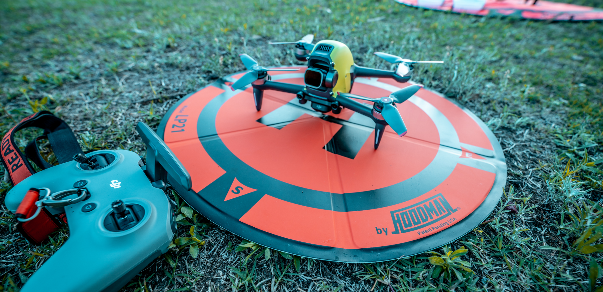 Five sizes of patented, rugged Drone Landing Pads to match your prop wash. No stakes required, Hoodman landing pads do not blow away.